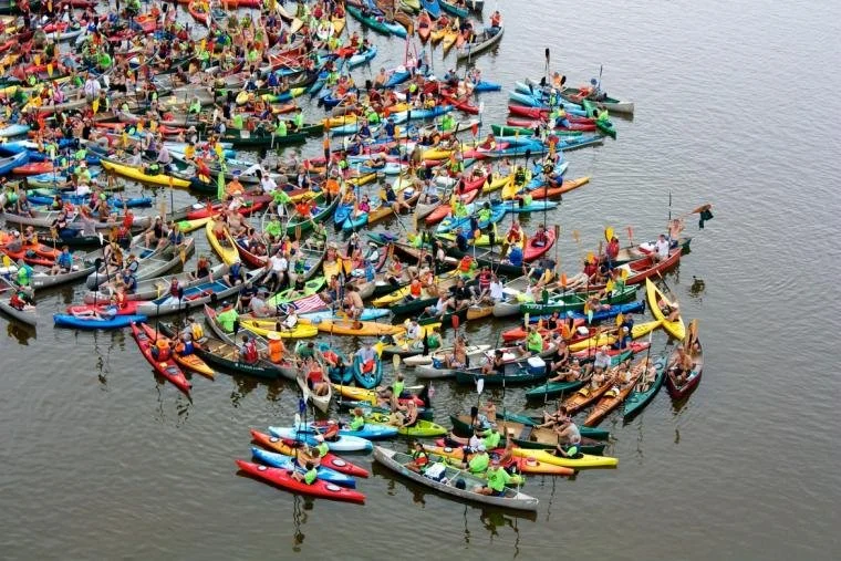 Floatzilla, organized by River Action (www.riveraction.org), is a celebrated annual event that attracts paddlers nationwide. Participants launch from eight sites across the Quad Cities, converging for a day of paddling, camaraderie, and environmental advocacy. The event supports River Action’s mission of promoting river stewardship and conservation.